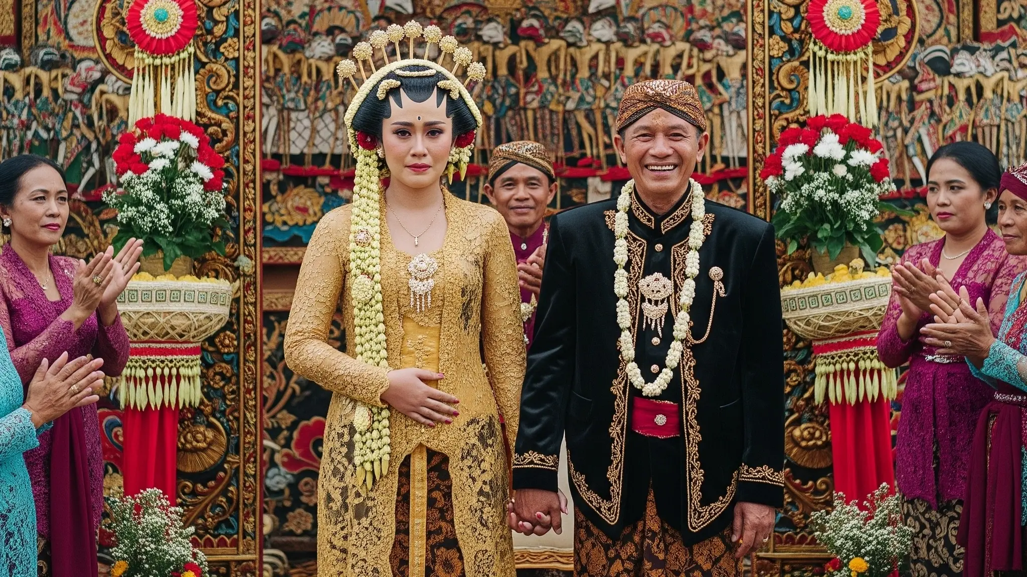 Just two weeks later, Ayu stood before a mirror in a golden kebaya, her face pale. Her 54-year-old groom, Mr. Bambang, was outside laughing with her uncles. She had met him only twice. He was kind but cold, wealthy but controlling. He had promised her family a job for her brother and money to pay off their debts.